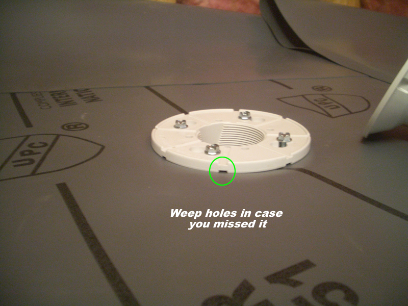 How can I fix this bad shower pan installation-Help. While you should never fill weep holes with.